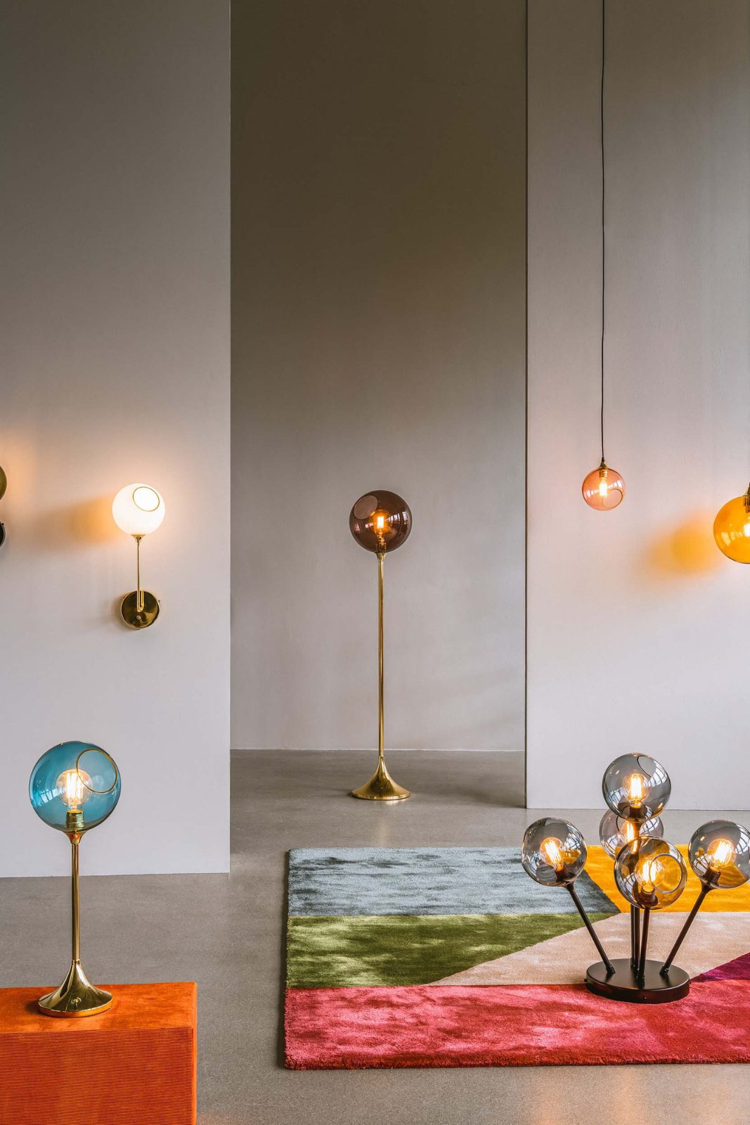 The Ballroom Floor Lamp is a versatile statement piece that seamlessly adapts to any room or interior style. Featuring a colored, mouth-blown glass dome and an elegant base, this lamp combines sophistication with a touch of artistry. The base is available in gold or black.