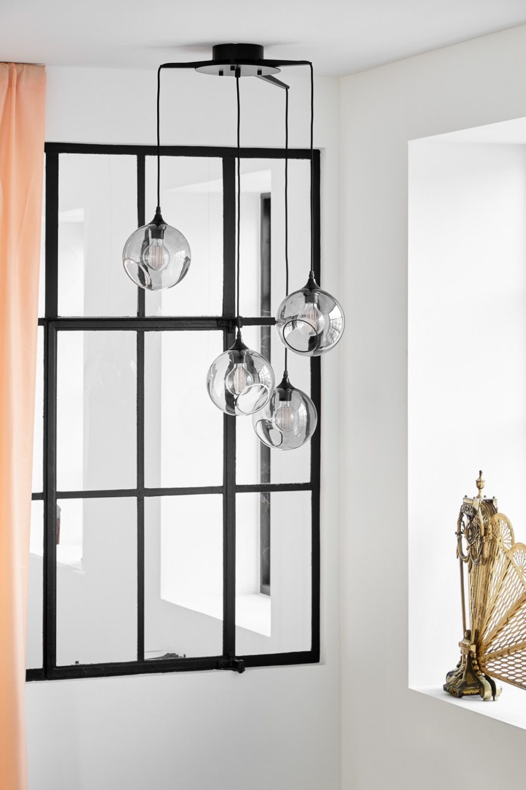 The Ballroom pendant is simple and excellent. The classic shape combined with the gold plated or black suspension makes this lamp timeless. The glass dome is mouth blown and hand painted. The edge of the faceted hole is either gold or silver.