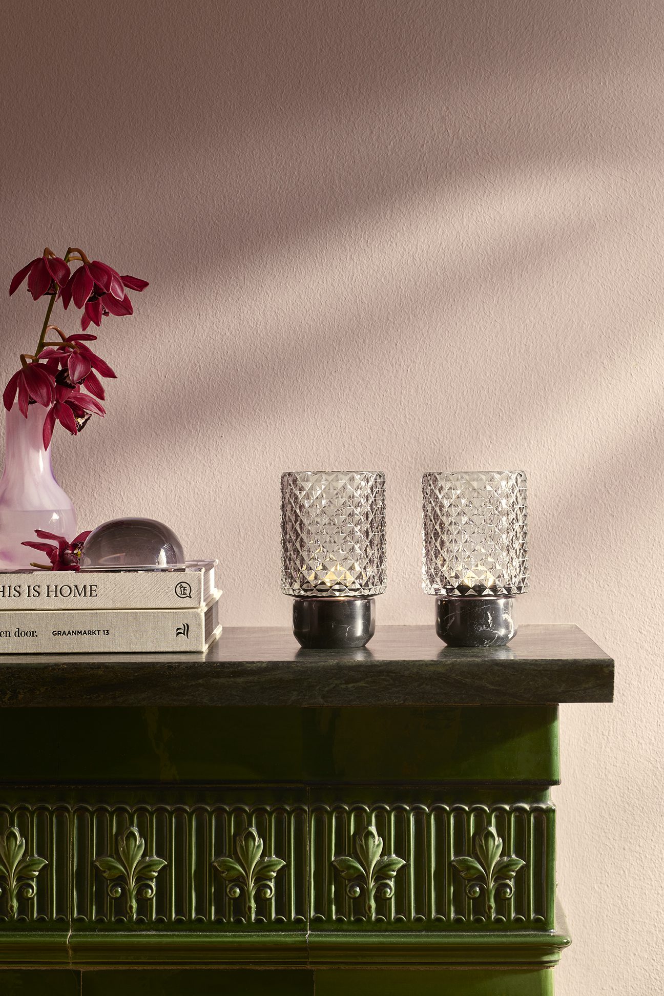 The Sons of Marble series features elegant candleholders crafted from marble and glass. Designed to create a cozy and inviting atmosphere, they can be displayed individually or mixed in different sizes for a striking arrangement.