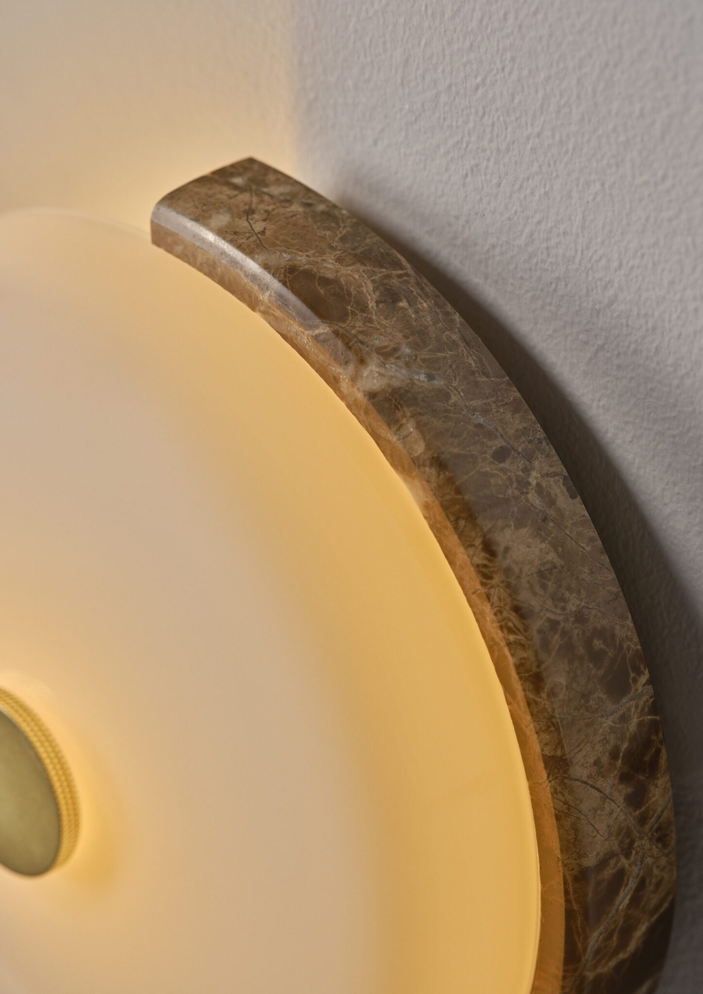 Explore our five different Trip Wall variations of marble. The marble is cut into a half-circle, creating a fan-like light effect from the lamp. It’s possible to purchase additional shades. Extra shades are available in glossy white, matte white, amber, grey, and rose.