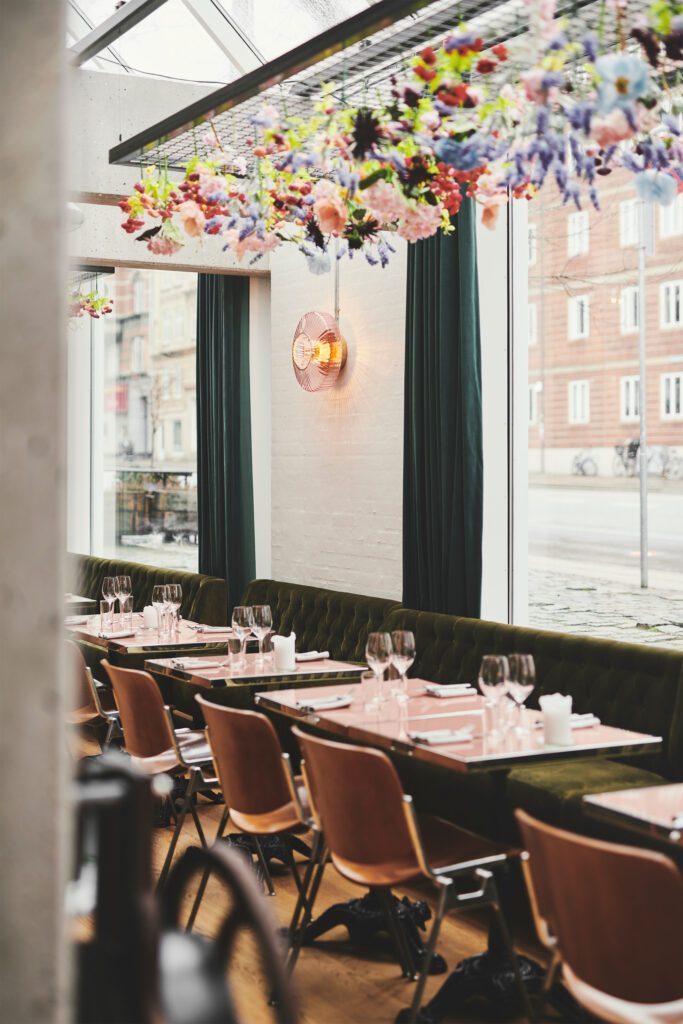 The Restaurant Holly interior design project by Høeg + Møller, Design By Us contributed with decorative and playful lighting that enhanced the restaurant’s overall atmosphere.