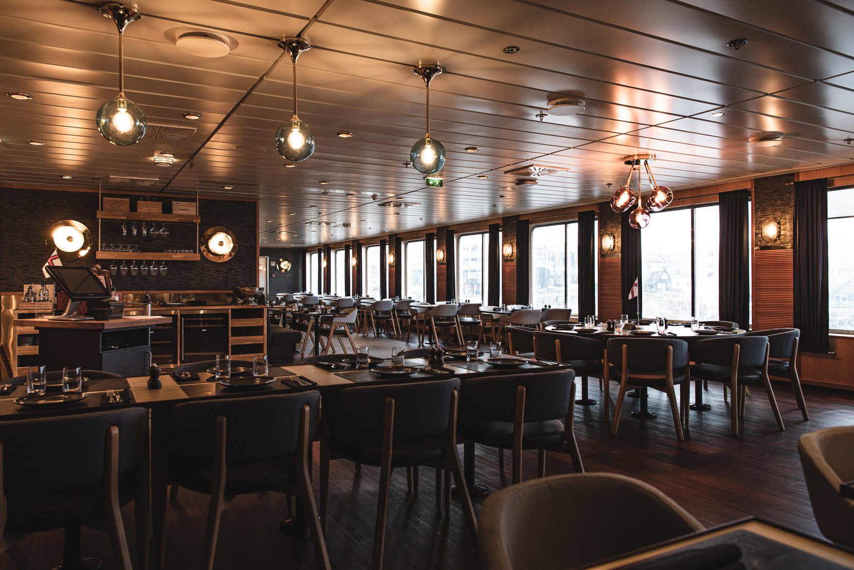 As part of the 2020/21 modernization, our lighting designs were added to the restaurant, cabins, and suites. From the start, the goal was to give passengers a warm and stylish travel experience across the North Atlantic.